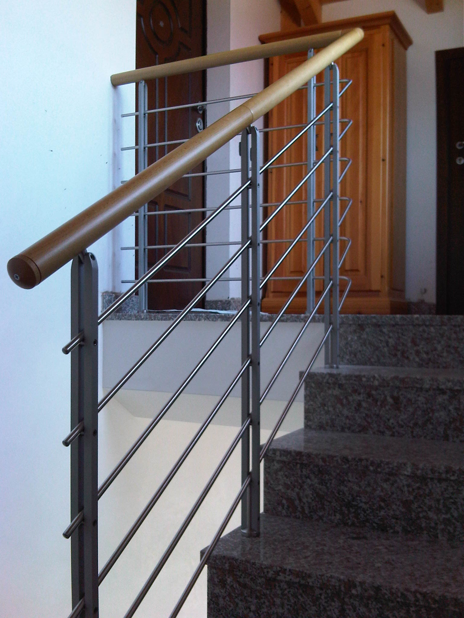 - per il corrimano: faggio massello, acciaio verniciato o acciaio inox.